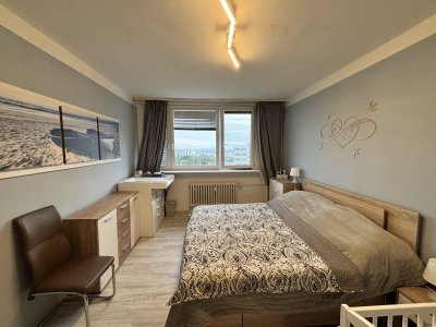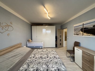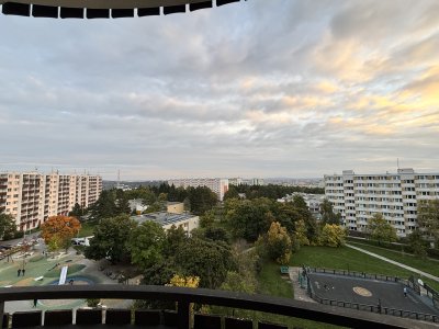 v bytě je plovoucí podlaha v dobrém stavu, nové elektrické rozvody, prostorný balkon s výhledem.
