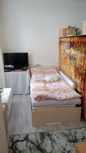 Nabízím k výměně menší byt 1+1 . Přes pokoj se vchází do menší kuchyňky. K bytu náleží dvoukolový vařič. Velká lodžie.