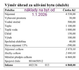 Zálohy na teplo: 1100 Kč/měsíc