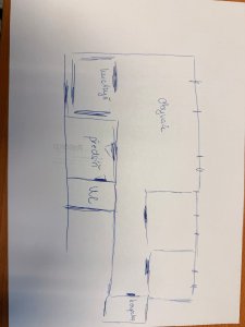 Místnosti: Pokoj 13m, pokoj 11 m, obývací pokoj+kuchyň 40m, předsíň 4,8m, koupelna 7,7m, wc 3m. Sklep 2m.