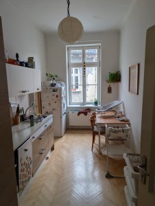 Nabízíme k výměně byt v dobrém stravu (rozsáhlá rekonstrukce proběhla před 12 lety) na ulici Biskupská. Díky lokaci je zde skvělá dostupnost všech služeb, na dohled Petrov a výhled na Denisovy sady. Na centrum je bydlení překvapivě klidné. Výměnu potřebujeme pouze z důvodu rozrůstání rodiny, jinak jsme spokojeni. Topí se plynem, dům je bez výtahu. Sousedé jsou milí a přátelští. Vjezd aut a stání na omezenou dobu před domem je možné. Auto používáme jako rodina často a parkování není zas takový problém ulice Kopečná je 5 minu chůze a ze zkušenosti se tam dá zaparkovat napoprvé.