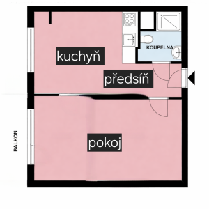 Místnosti: Pokoj 16 m2,předsíň s kuchyní 12,3 m2,koupelna s WC 2,92 m2 ,balkón 2,50 m2, sklep 1,90 m2